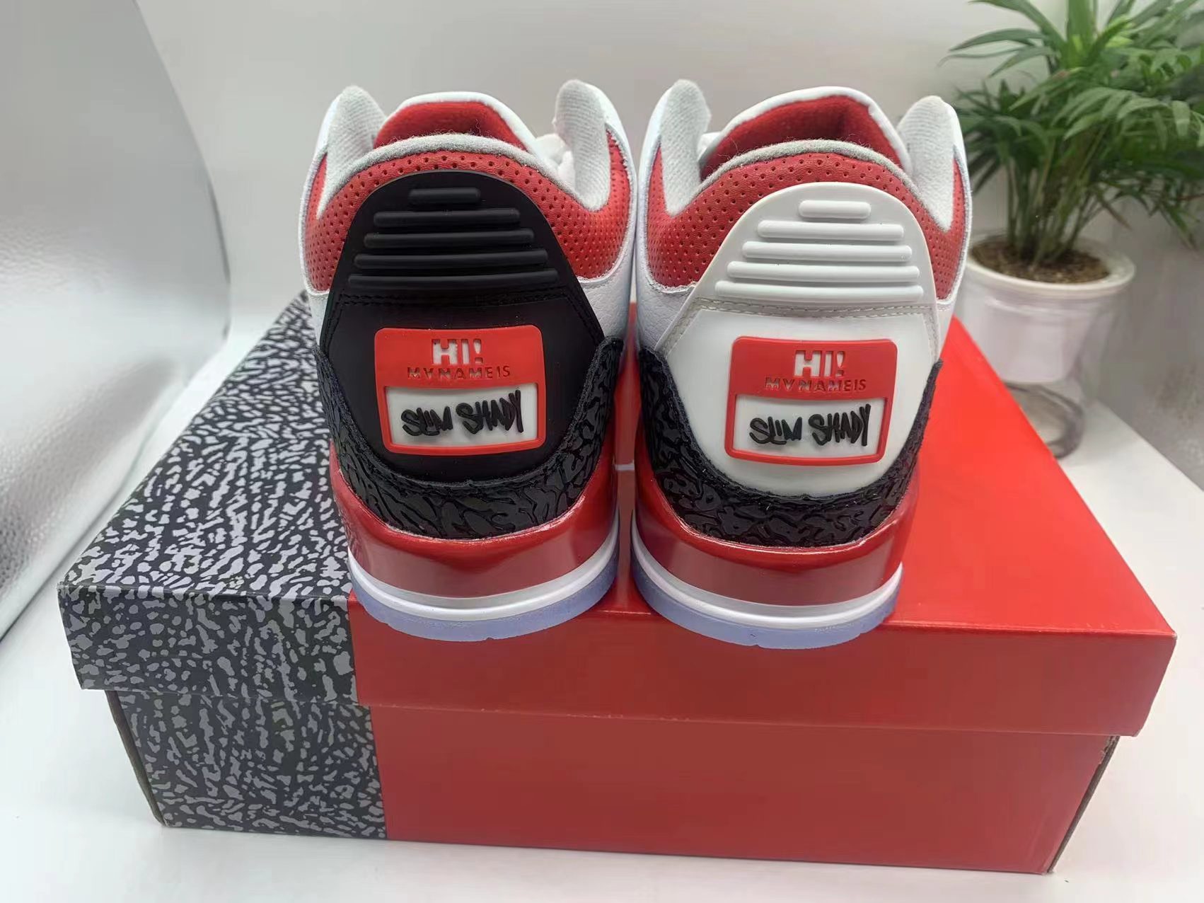 Iconic Eminem Air Jordan 3 Slim Shady PE colorway and logo stitching