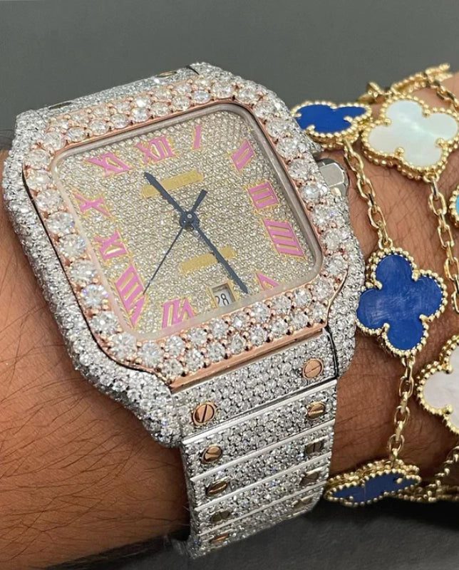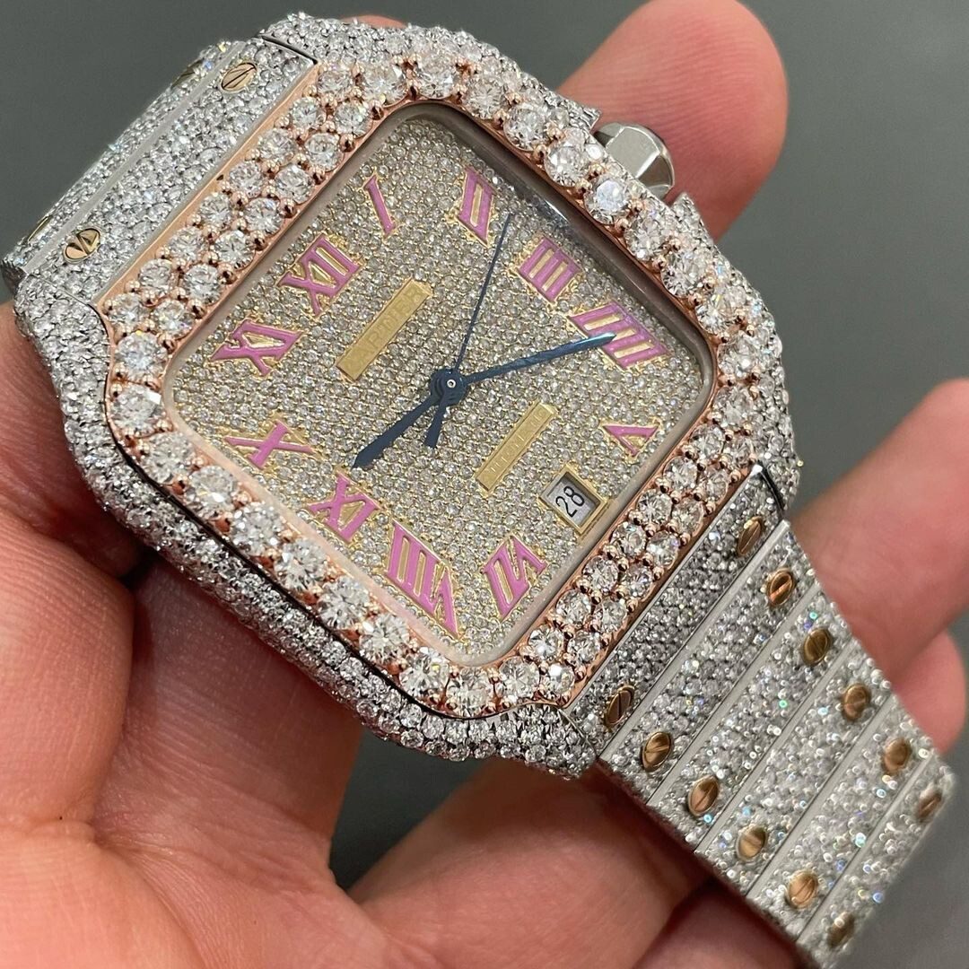 Iced Out VVS Moissanite Diamond Cartier Bust Down Luxury Watch (Pass Diamond Tester)