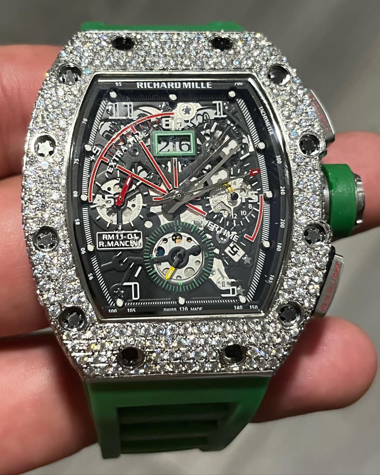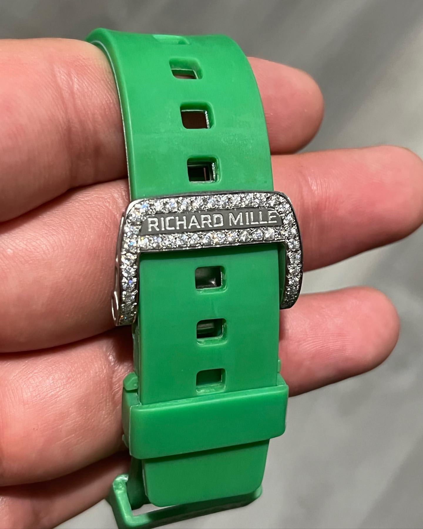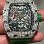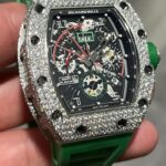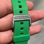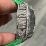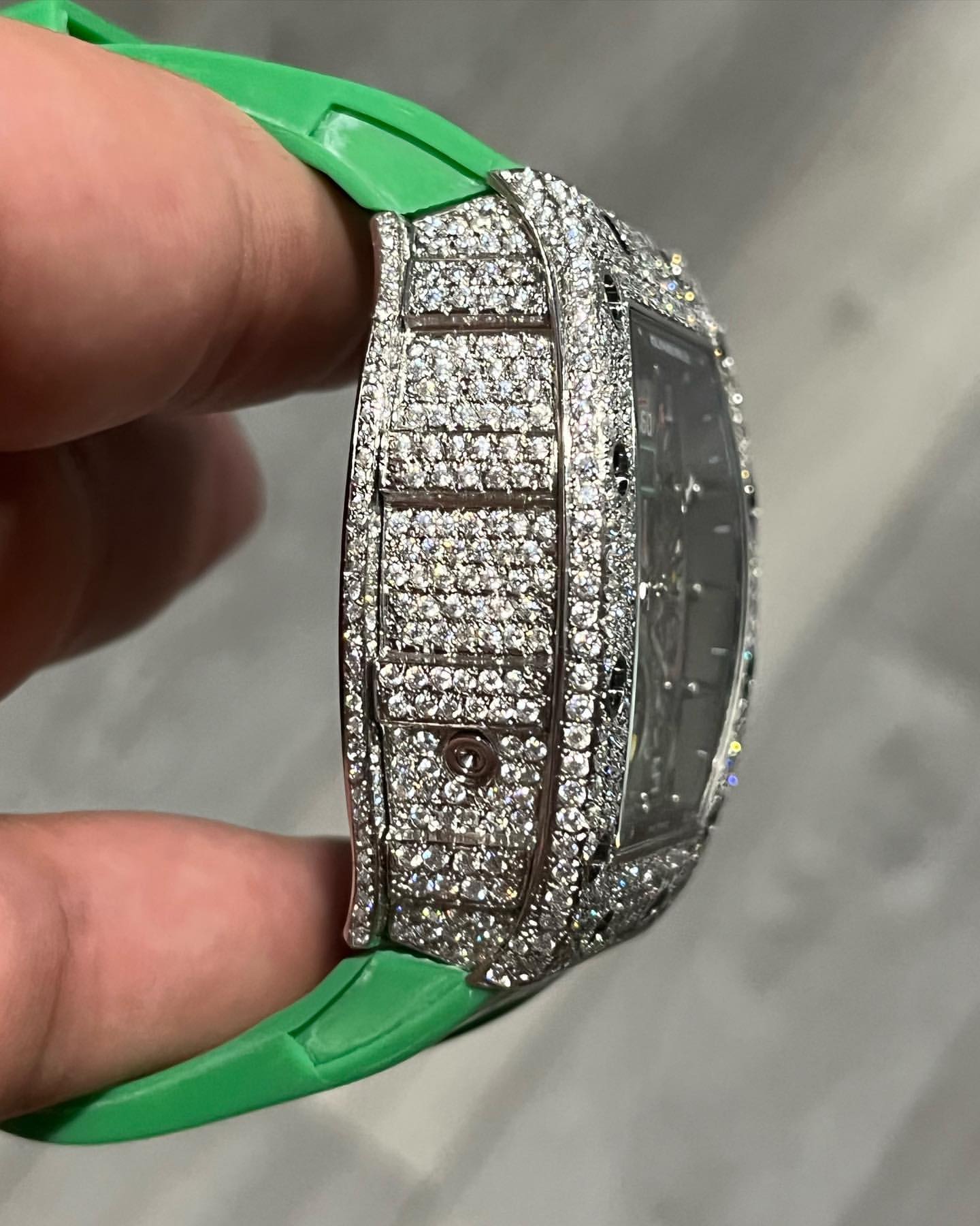 Iced Out VVS Moissanite Diamond Richard Mille Bust Down Luxury Green Band Watch (Pass Diamond Tester)