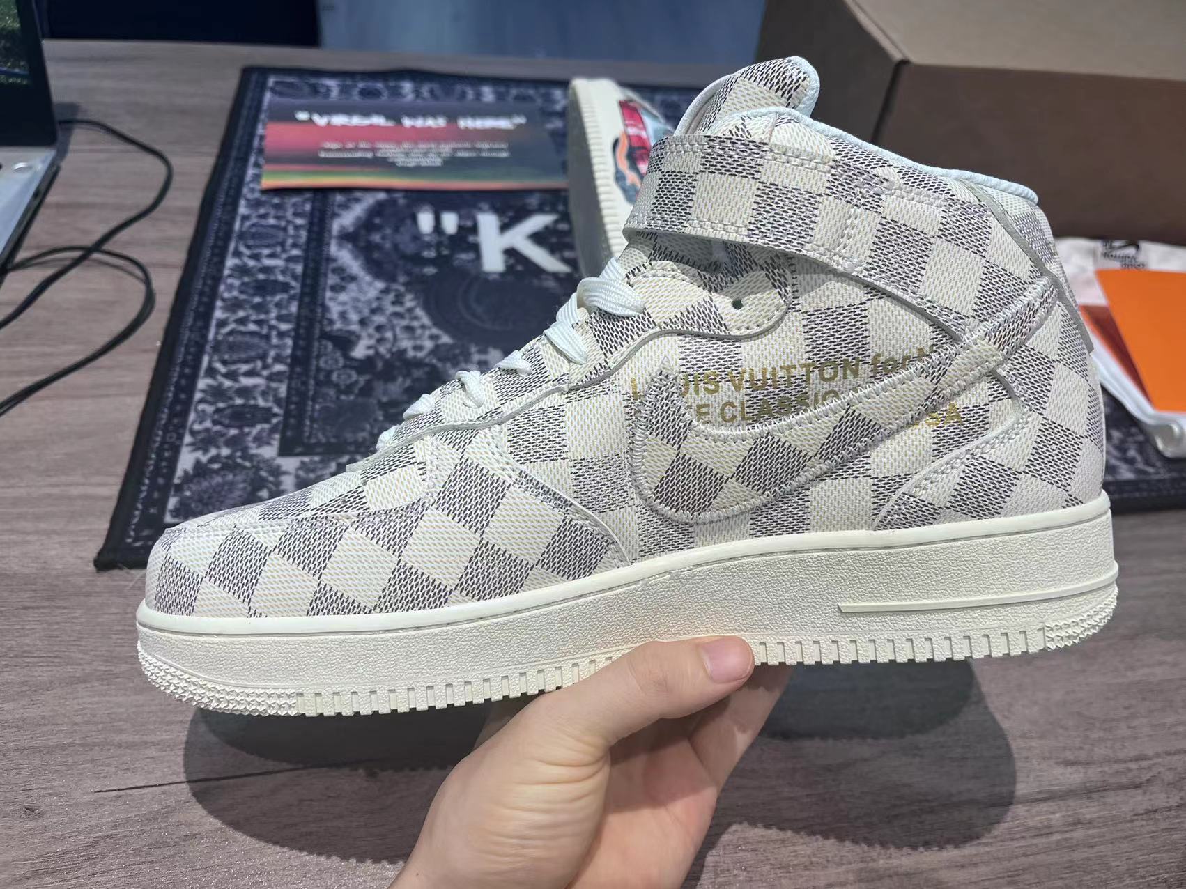 The shoes were made by Louis Vuitton in Italy’s Fiesso d’Artico, marking the first time the shoe was crafted outside of a Nike Factory. The Louis Vuitton x Air Force 1 collection was fashioned with unparalleled craftsmanship and expertise, emphasizing Louis Vuitton’s acclaimed attention to detail and technique. Each pair was crafted with unique materials and textiles selected by Abloh and pulled from the Louis Vuitton Spring/Summer 2022 menswear show titled “VIRGIL WAS HERE”.